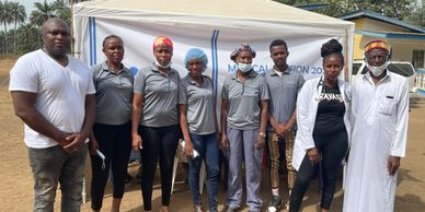 Our deligent team members, Ibrahim, Aisha, and Hawa Mason Jalloh completing free community health screenings